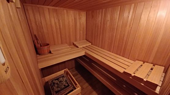 Kelder: sauna, wasmachine, droogkast, koelkast met diepvriesvak