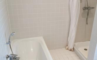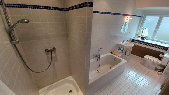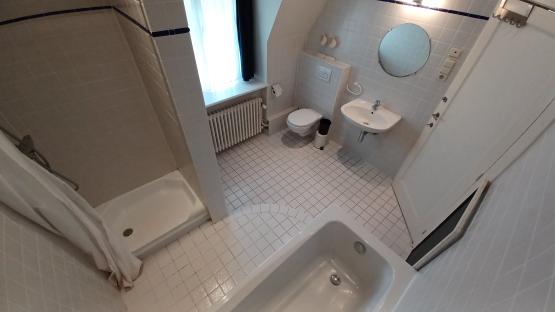 Badkamer 1: ligbad, douche, wastafel, toilet